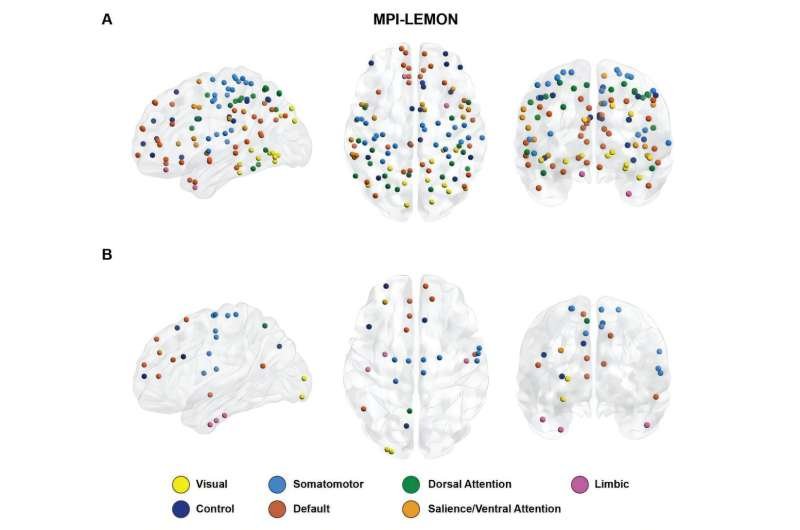 A nivel mesoscópico, el equipo examinó siete redes principales en estado de reposo, incluyendo las redes somatomotoras, de atención por defecto y de atención dorsal. Sus análisis revelaron que el envejecimiento afecta particularmente a las redes somatomotoras , de atención dorsal, de atención de prominencia/ventral y de atención por defecto, mientras que las diferencias relacionadas con el autismo se concentran en las redes somatomotoras, de atención de prominencia/ventral y de atención por defecto. Esto demuestra que los efectos globales no surgen uniformemente en todo el cerebro, sino que provienen de sistemas funcionales específicos.
